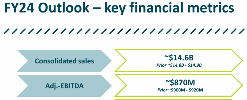 基于今年第二季度的业绩表现,安道拓将其全年销售额预期从“148-149.8亿美元”下调至146亿美元;调整后的息税折旧及摊销前利润从“9-9.2亿美元”下调至8.7亿美元。
