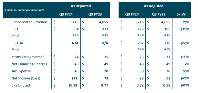 在截至6月30日的季度中,安道拓营收同比下降8%至37亿美元;调整后的净利润同比暴跌69%至2,900万美元;因客户产量下降,调整后的息税折旧及摊销前利润(Adjusted EBITDA)为2.02亿美元,同比下降27%;调整后的息税折旧及摊销前利润率同比下降了1.4个百分点至5.4%。截至6月底,现金及现金等价物为8.9亿美元;自由现金流(经营现金流减去资本支出)为8,800万美元。