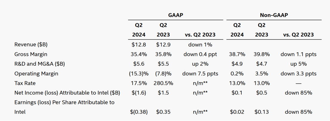英特尔Q2财报;图片来源:英特尔