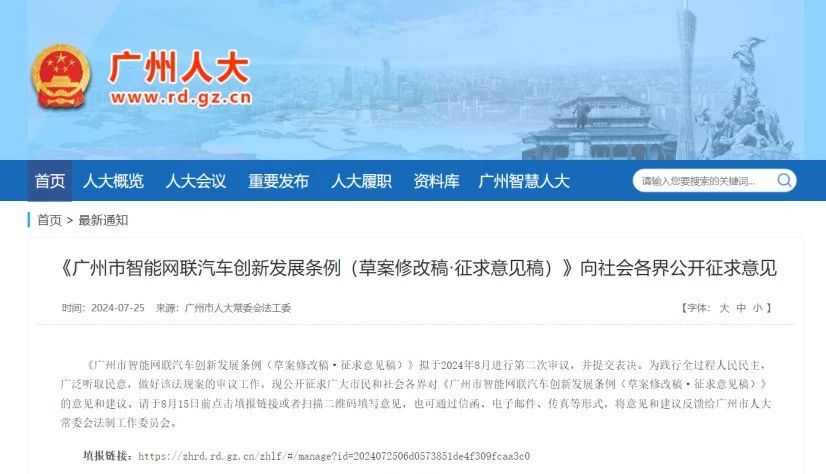 近日,广州市人大官网发布《广州市智能网联汽车创新发展条例(草案修改稿·征求意见稿)》,其中提出,拟支持智能网联汽车在高速公路、机场、港口、车站等干线和交通枢纽开展创新应用,并支持用于城市公交、出租车等出行服务场景。