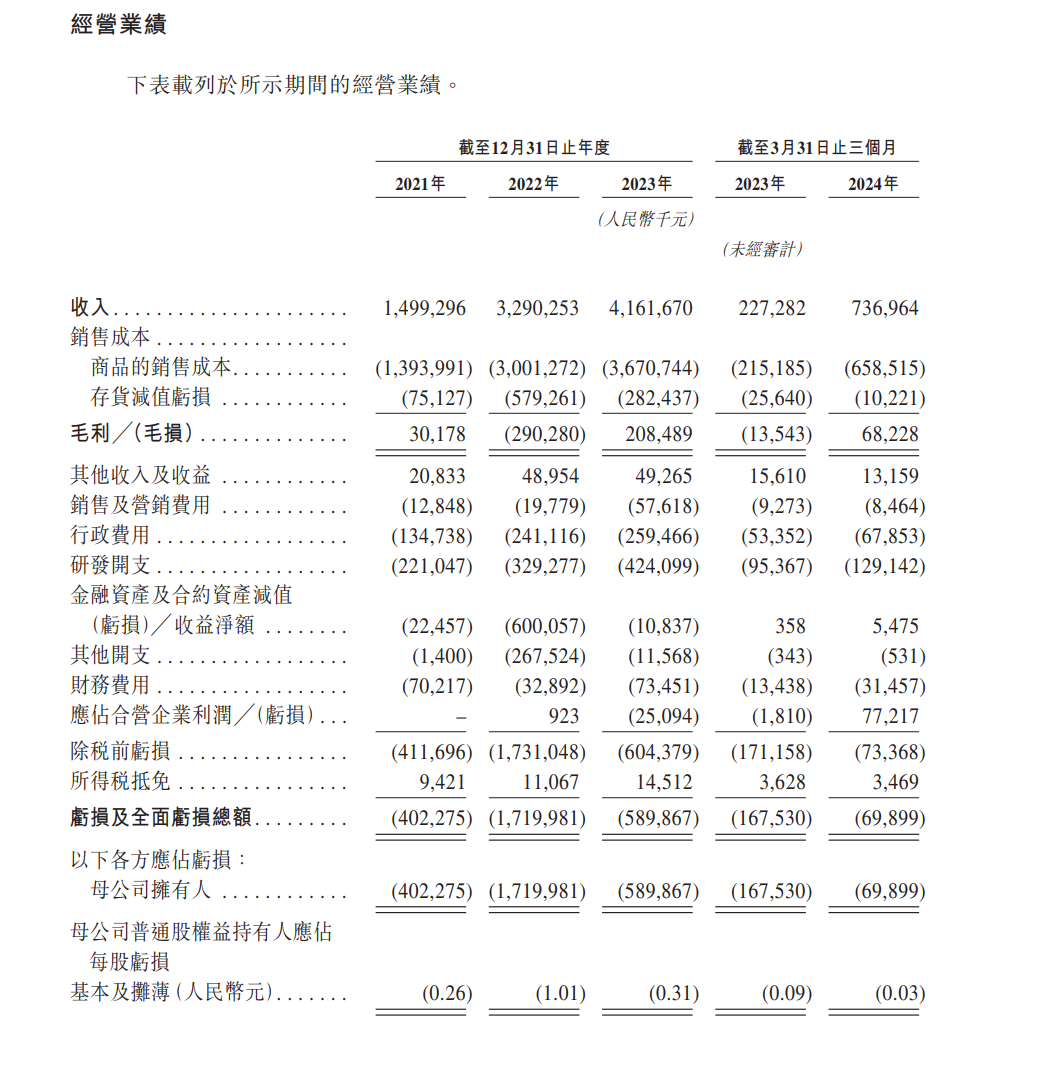 招股书显示,2021年至2023年,该公司实现营业收入14.99亿元、32.90亿元、41.62亿元;同期亏损分别为4.02亿元、17.2亿元、5.9亿元。