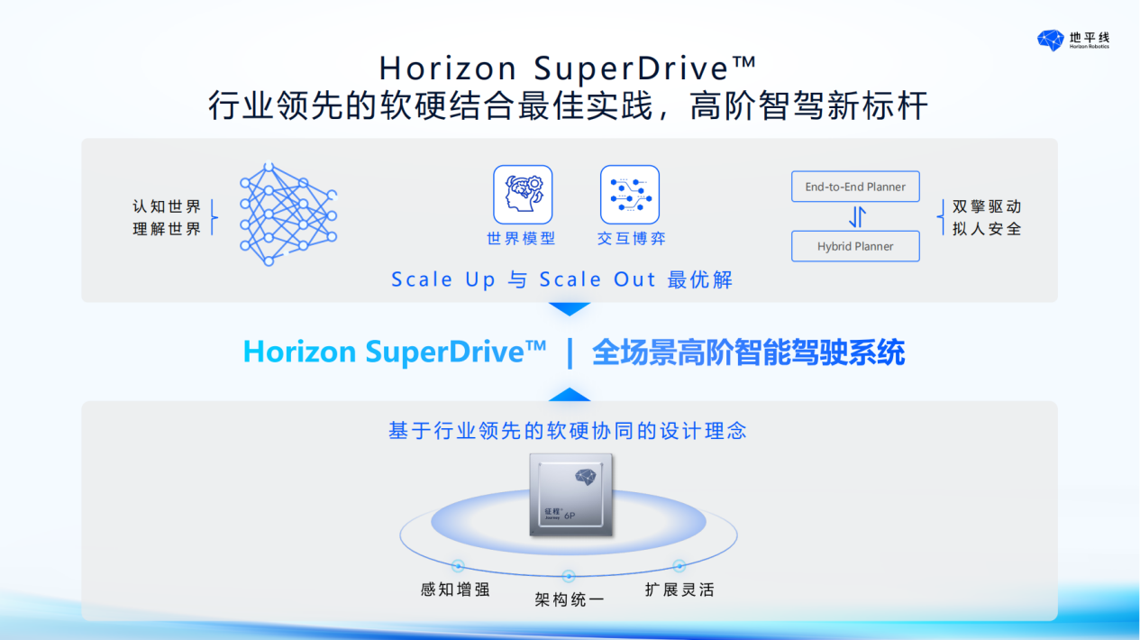 基于以人为本的产品理念,地平线在顶级软件算法基础上,面向下一代全场景高阶智驾系统打造了Horizon SuperDrive™全场景智能驾驶解决方案,实现了全场景无差别的智能驾驶,为用户带来兼备超强通行效率与优雅从容姿态的拟人化智驾体验,树立了行业高阶智能驾驶的新标杆。
