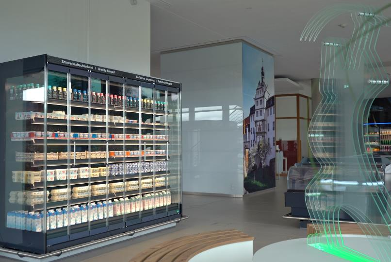 PAN- DUR 的玻璃元件采用强化安全玻璃(ESG),用于超市常见大型冷藏设备,如:墙上货架、橱柜或柜台,以保护内部存放的各种食品。 为了遮盖玻璃和制冷设备边缘不美观的粘合和密封接缝,PAN-DUR还采用了不透明装饰条。之前,喷涂该装饰条往往采用丝网印刷工艺,因而每次变换颜色、尺寸或设计,都需要更换新的丝网或模板,造成了浪费。