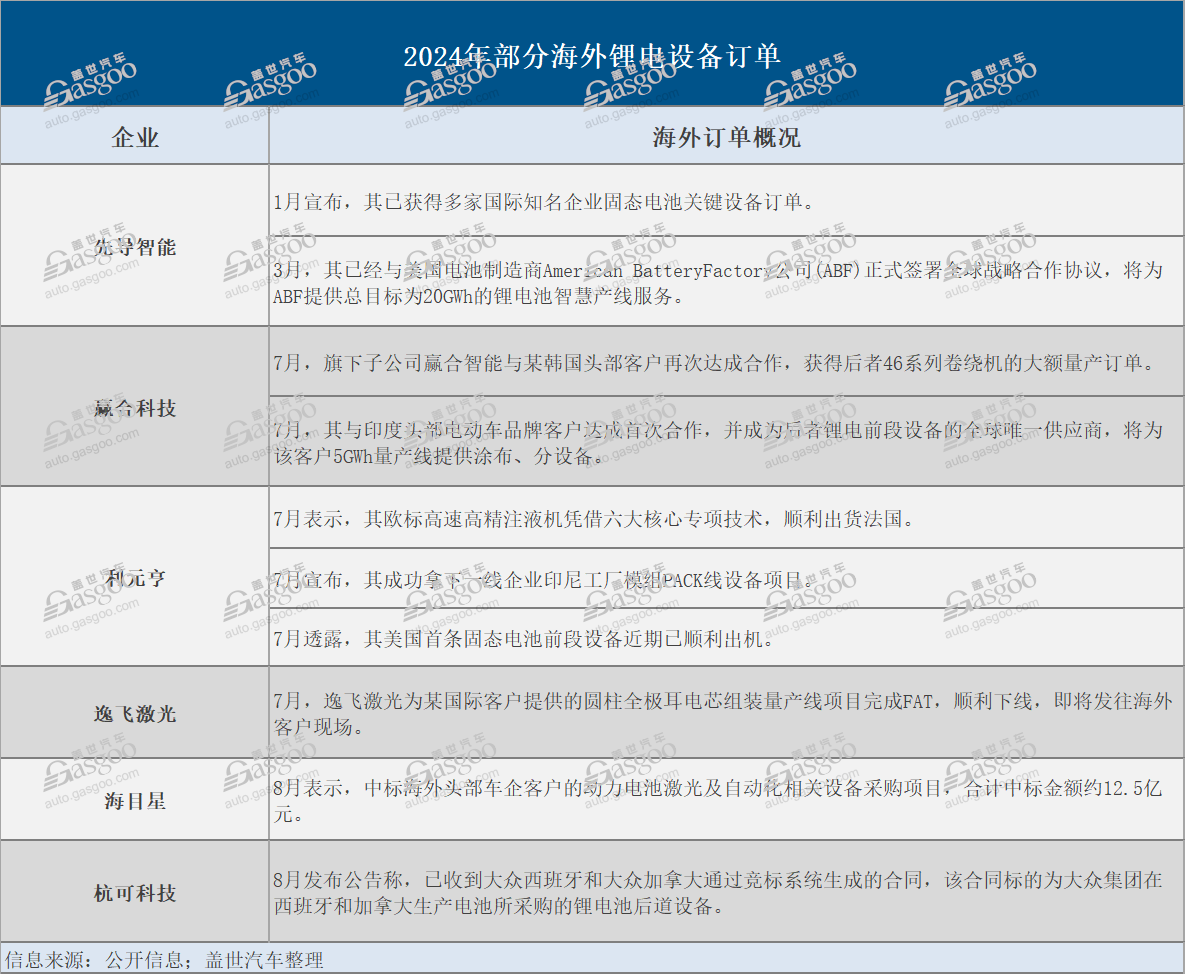事实确实如此。跃车前沿查阅相关企业公布信息得知,今年1-8月,国内有近10家锂电设备企业纷纷宣布斩获海外大客户订单。