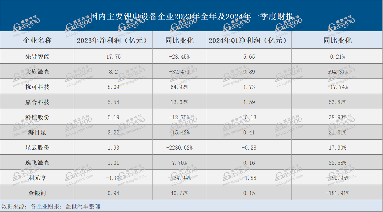 大批量订单,也给国内锂电设备企业带来良好的收益。
