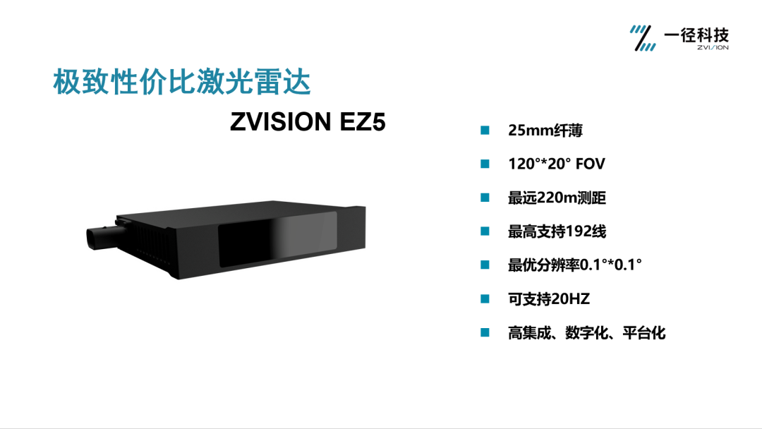 在今年年初,一径科技推出了其SPAD激光雷达系列的首个产品ZVISION EZ6,喊出了“将LiDAR带入千元时代”的口号。在北京车展上,一径科技又发布了ZVISION EZ5产品。据了解,EZ系列采用了基于高度集成的SPAD芯片的平台设计,不仅大幅简化系统结构,还对光学机械系统等方面进行了优化,从而进一步降低了成本。