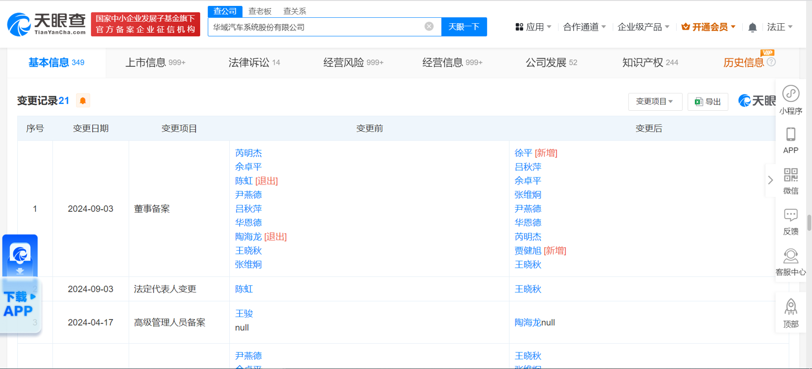 9月6日消息,据天眼查显示,华域汽车系统股份有限公司(以下简称“华域汽车”)于近日发生工商变更,陈虹卸任法定代表人、董事长,由王晓秋接任,同时,部分董事也发生变更。