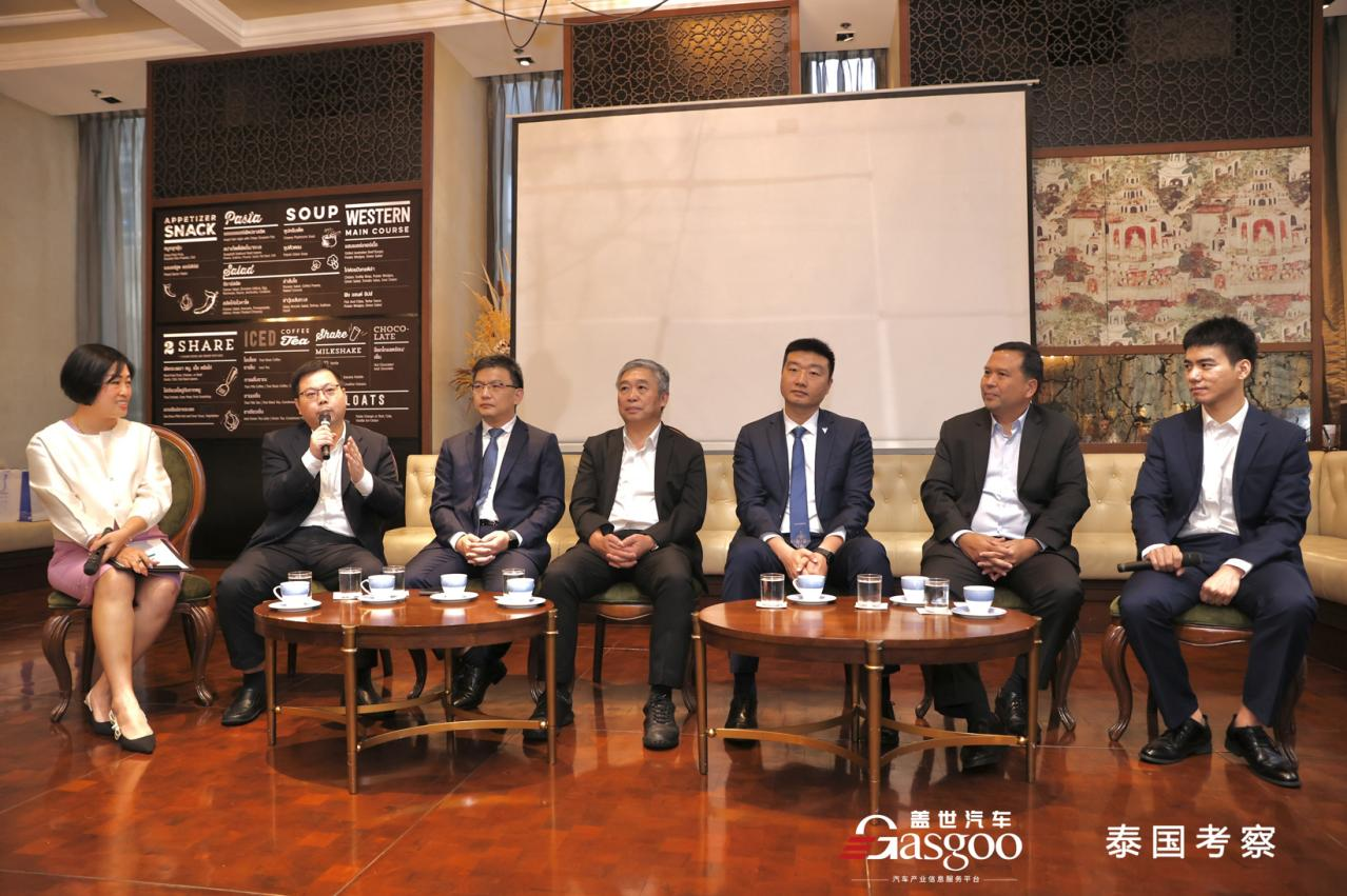 9月4日,“智行泰国”首日,跃车前沿特别组织了交流会与欢迎晚宴。由大拓律师事务所马特娜与跃车前沿陈玮玮担任主持人,邀请到BOI 副秘书长Wirat Tatsaringkansakul、TAI副主席Threepol Boonyamarn、长城泰国总经理崇保玉、长安东南亚副总经理关鑫、上汽名爵销售总监薛军等五人参与“泰国投资与海外市场战略”交流会。