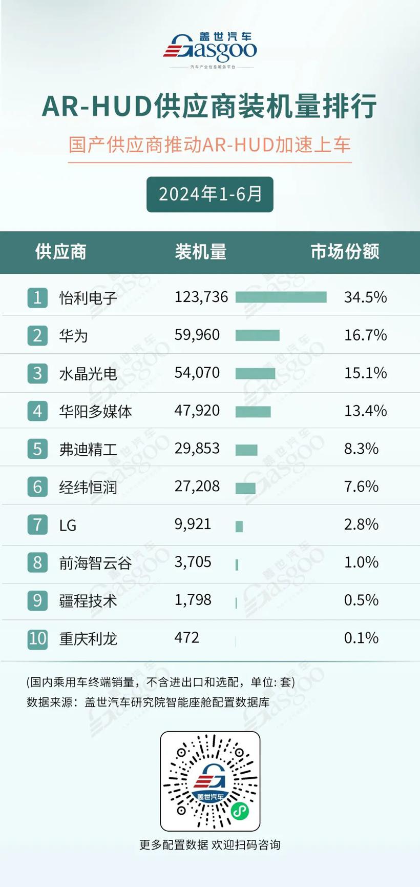 其中排名前三的依次是怡利电子、华为和水晶光电,上半年AR-HUD装机量分别为12.4万套、6万套和5.4万套,合计占据超66%的市场份额。