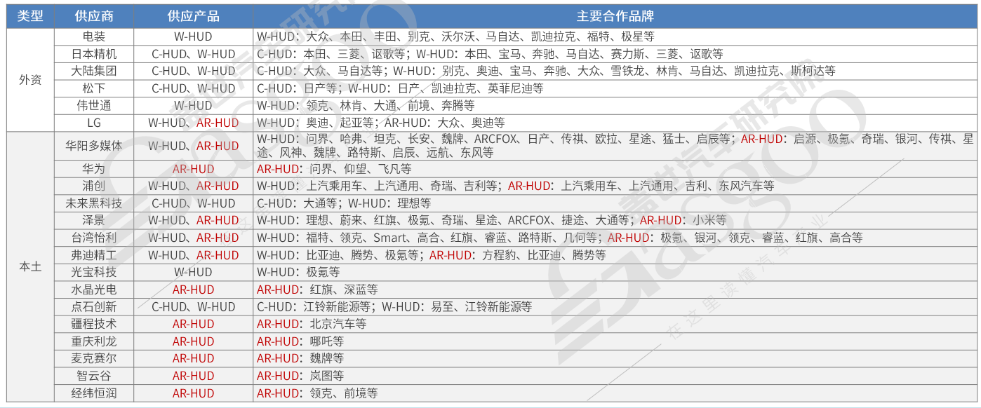 HUD供应商Top10,自主占7席